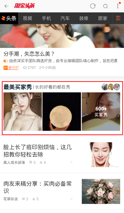 头条的最美买家秀模块