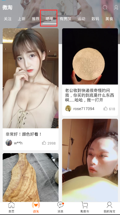 微淘的晒单专属模块